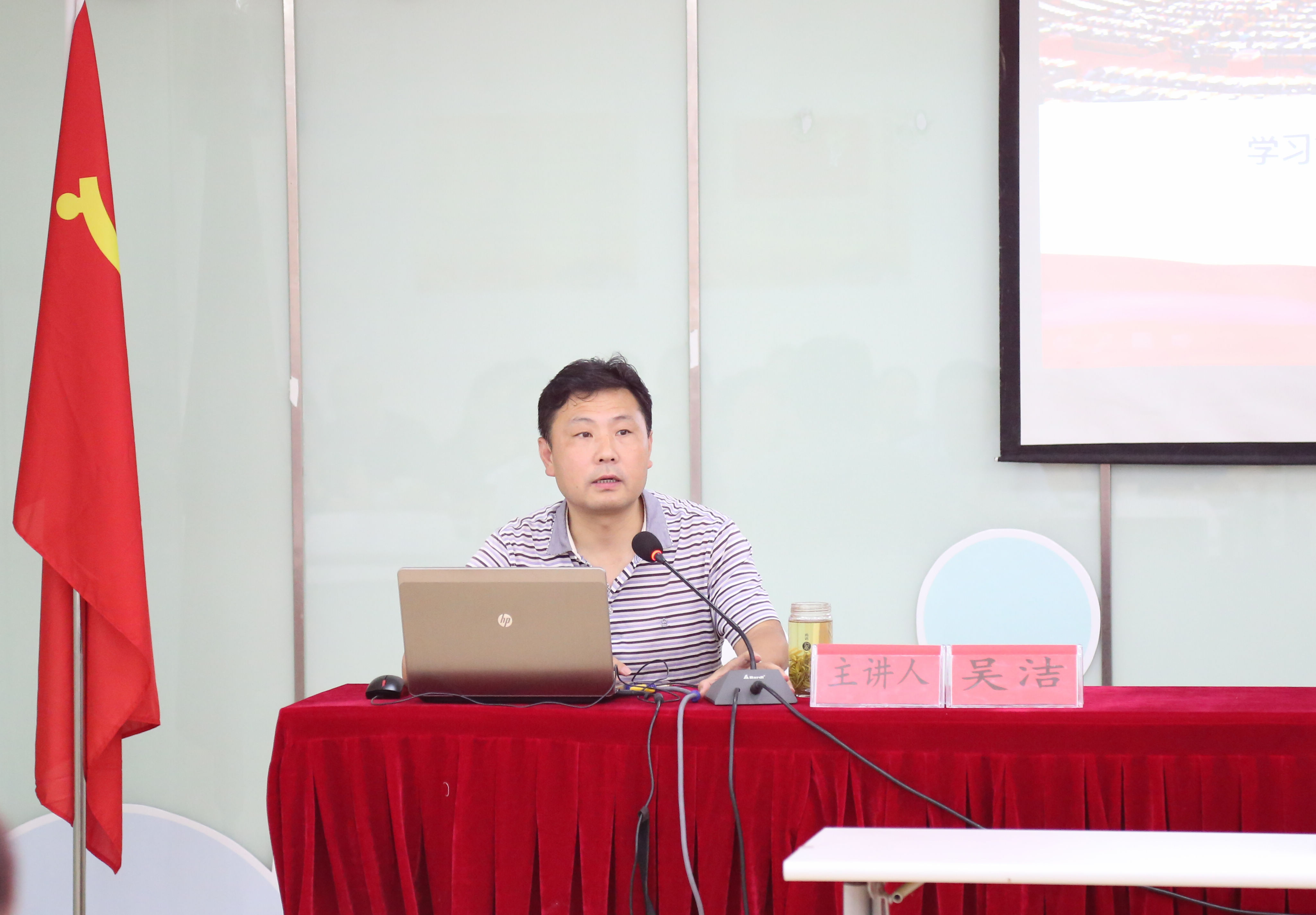 授課中,吳潔教授以“學(xué)習(xí)貫徹習(xí)近平新時代中國特色社會主義思想和黨的十九大精神”為主題,從深刻領(lǐng)會黨的十九大主題及主要成果、習(xí)近平新時代中國特色社會主義思想的歷史地位和豐富內(nèi)涵、十八大以來黨和國家發(fā)生的歷史性變革、新時代的社會主要矛盾新變化、全面建設(shè)現(xiàn)代化強(qiáng)國的戰(zhàn)略部署、堅(jiān)定不移全面從嚴(yán)治黨的重大部署等六個方面,對習(xí)近平新時代中國特色社會主義思想及黨的十九大精神作了系統(tǒng)、全面的解讀與闡述。吳教授結(jié)合自己的學(xué)習(xí)體會,運(yùn)用了大量生動的數(shù)據(jù)和事例,語言通俗易懂,邏輯清晰有秩,不斷引起在場黨員的共鳴,會上反響熱烈。