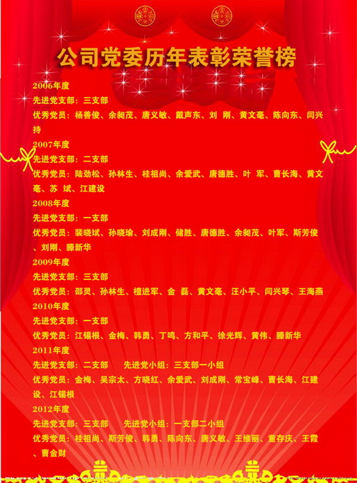 公司黨委歷年表彰榮譽(yù)榜 發(fā)布時(shí)間:2013-12-13    閱讀次數(shù):13311次