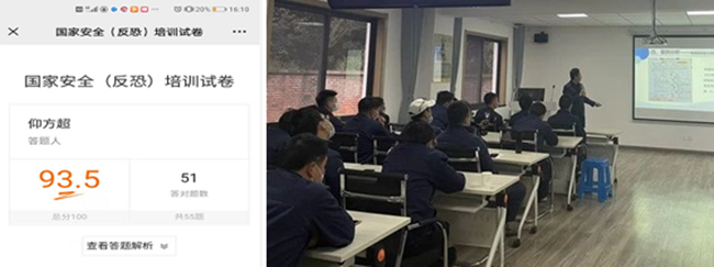 公司以部門(mén)、組別為單位,組織全體員工認(rèn)真學(xué)習(xí)《反恐怖主義法》《刑法》《國(guó)家安全法》等相關(guān)法律法規(guī),并開(kāi)展線(xiàn)上反恐理論知識(shí)答題考核,進(jìn)一步鞏固提升全員安全反恐防爆知識(shí)和能力。