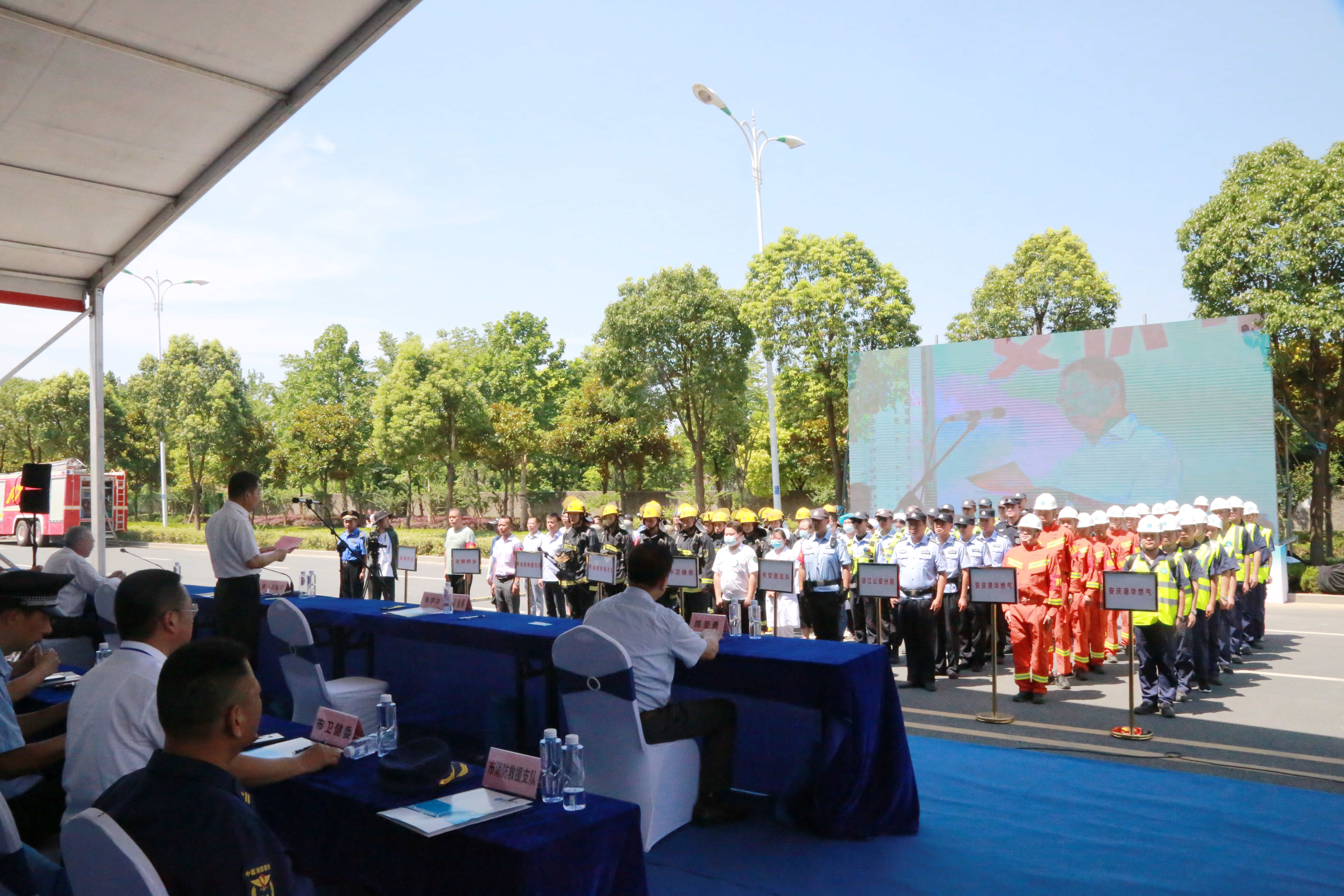 市政府副秘書長何健出席本次演練并任總指揮,市應(yīng)急局局長程結(jié)書任副總指揮,市城管局局長朱學(xué)華任現(xiàn)場總指揮。