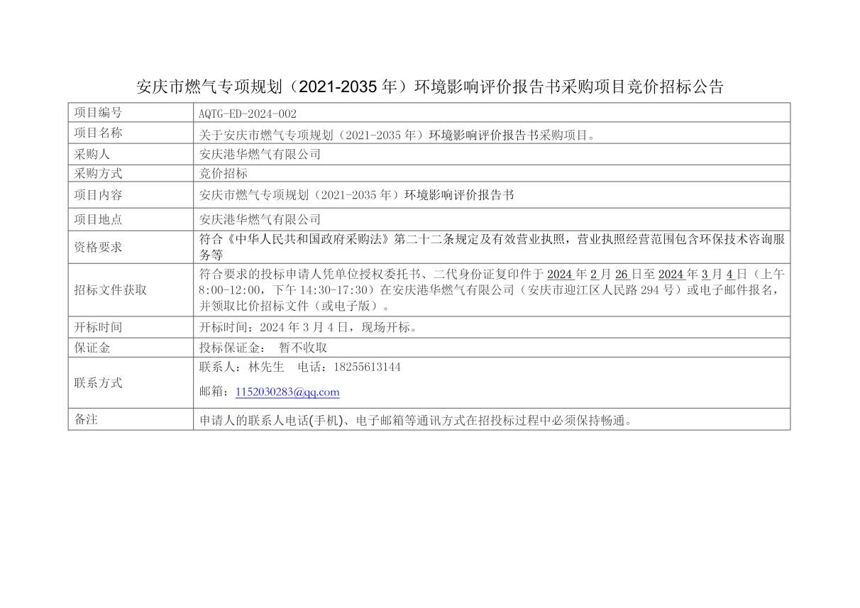 關(guān)于安慶市燃?xì)鈱m?xiàng)規(guī)劃(2021-2035年)環(huán)境影響評(píng)價(jià)報(bào)告書采購項(xiàng)目公告