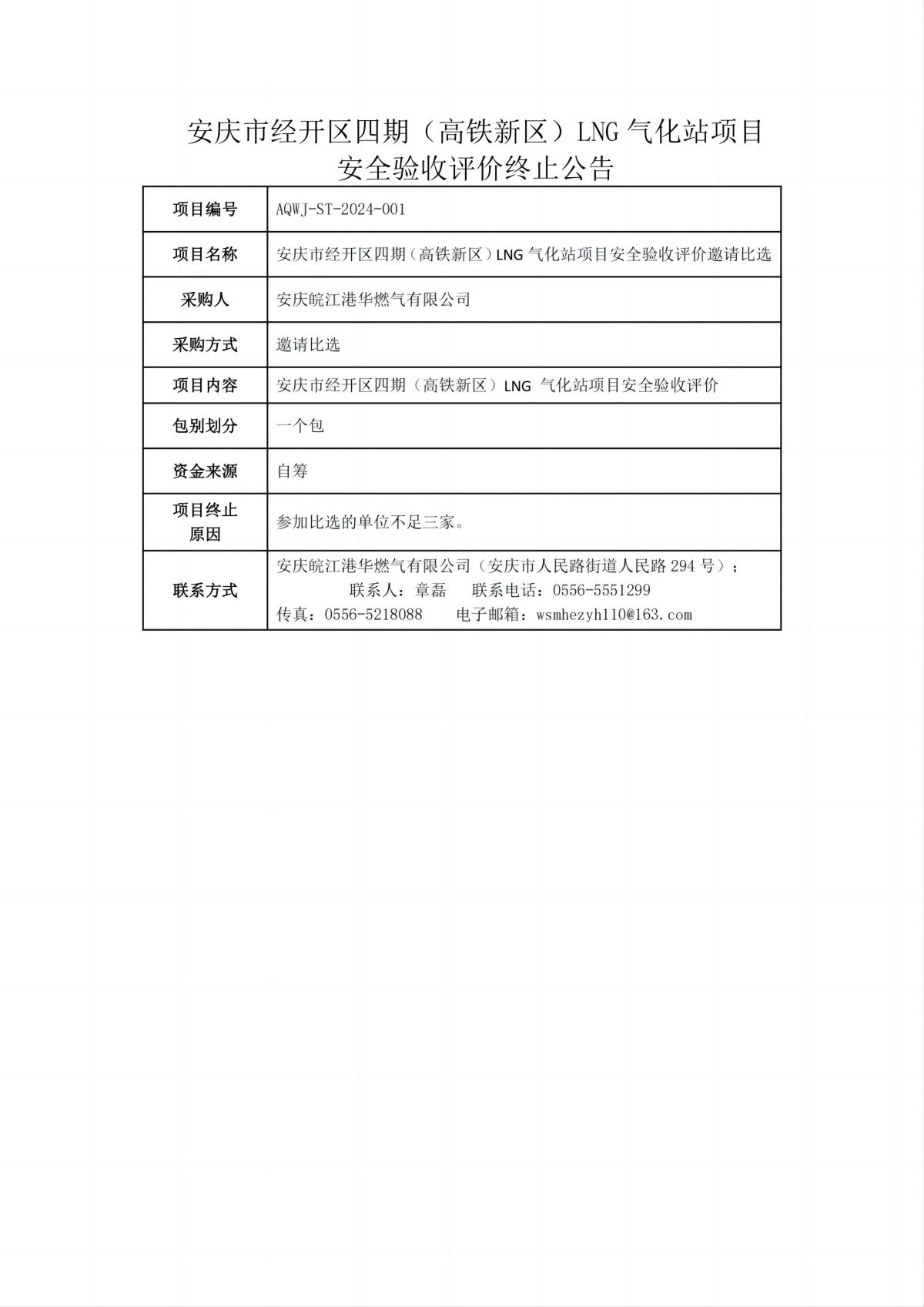 安慶市經(jīng)開區(qū)四期(高鐵新區(qū))LNG 氣化站項目安全驗收評價終止公告