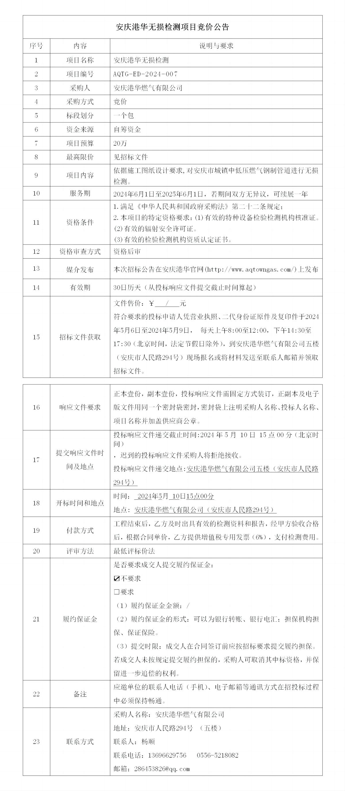 安慶港華無損檢測項(xiàng)目競價(jià)公告