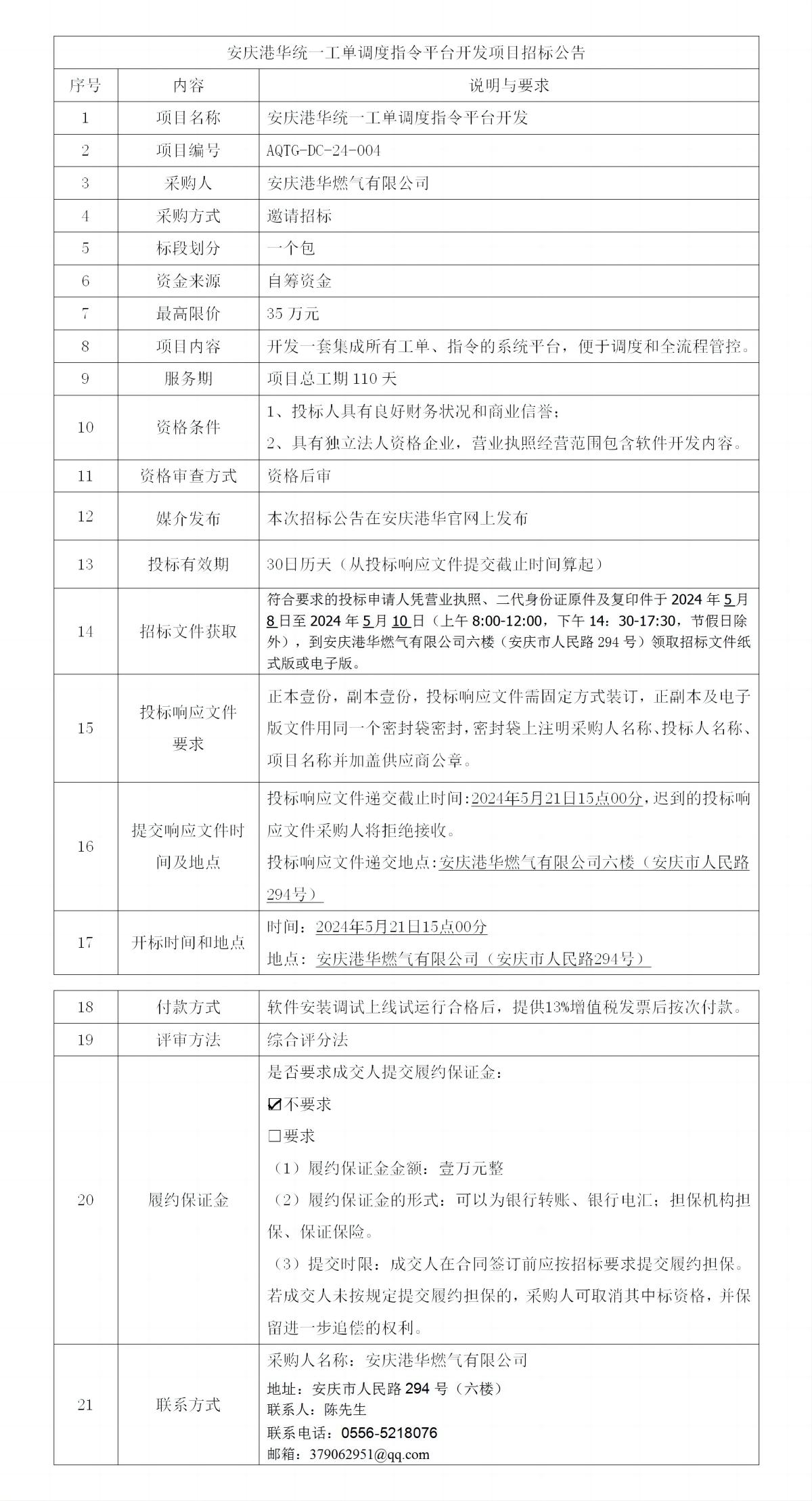 安慶港華統(tǒng)一工單調(diào)度指令平臺(tái)開發(fā)項(xiàng)目招標(biāo)公告