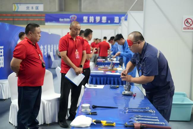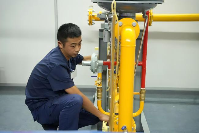 本次競賽分為理論考試和實操競賽兩大部分,內(nèi)容涵蓋技術(shù)方案編制、蒙眼拆裝、工藝系統(tǒng)檢查及故障排除等多項考核內(nèi)容。理論考試主要檢驗參賽選手對燃?xì)夤艿勒{(diào)壓相關(guān)知識的掌握情況,而實操競賽則通過模擬真實工作環(huán)境,全面考察選手的實際操作能力和應(yīng)對突發(fā)情況的能力。在實操競賽中,選手們需要在規(guī)定時間內(nèi)完成蒙眼拆裝切斷閥、排查調(diào)壓器故障并恢復(fù)管道壓力等任務(wù),整個過程需準(zhǔn)確無誤的完成144個零件的拆裝,并一次性調(diào)試合格。比賽現(xiàn)場氣氛緊張而熱烈,選手們?nèi)褙炞ⅰ幏謯Z秒,展現(xiàn)了燃?xì)庑袠I(yè)職工良好的職業(yè)素養(yǎng)和團(tuán)隊協(xié)作精神。