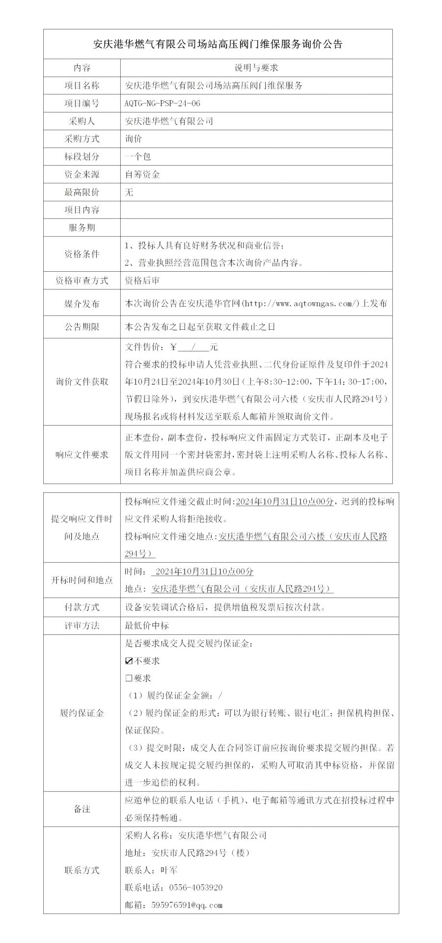 安慶港華燃?xì)庥邢薰緢稣靖邏洪y門維保服務(wù)詢價公告
