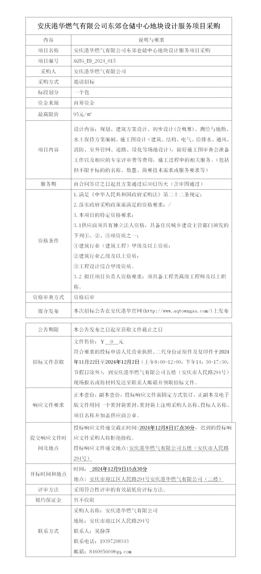 安慶港華燃氣有限公司東郊倉儲中心地塊設(shè)計服務(wù)項目采購 發(fā)布時間:2024-11-22    閱讀次數(shù):3222次