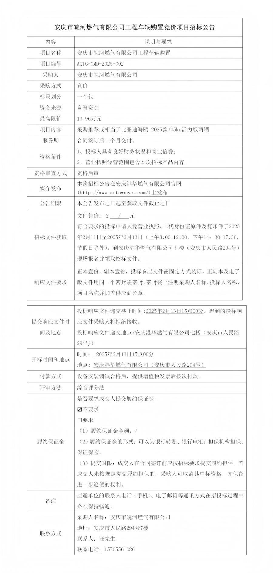 安慶市皖河燃?xì)庥邢薰竟こ誊囕v購(gòu)置競(jìng)價(jià)項(xiàng)目招標(biāo)公告