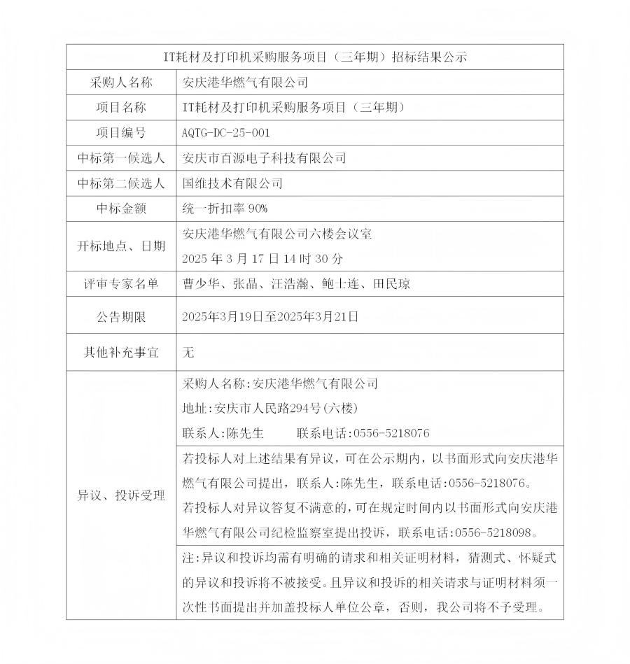 IT耗材及打印機(jī)采購服務(wù)項(xiàng)目(三年期)招標(biāo)結(jié)果公示