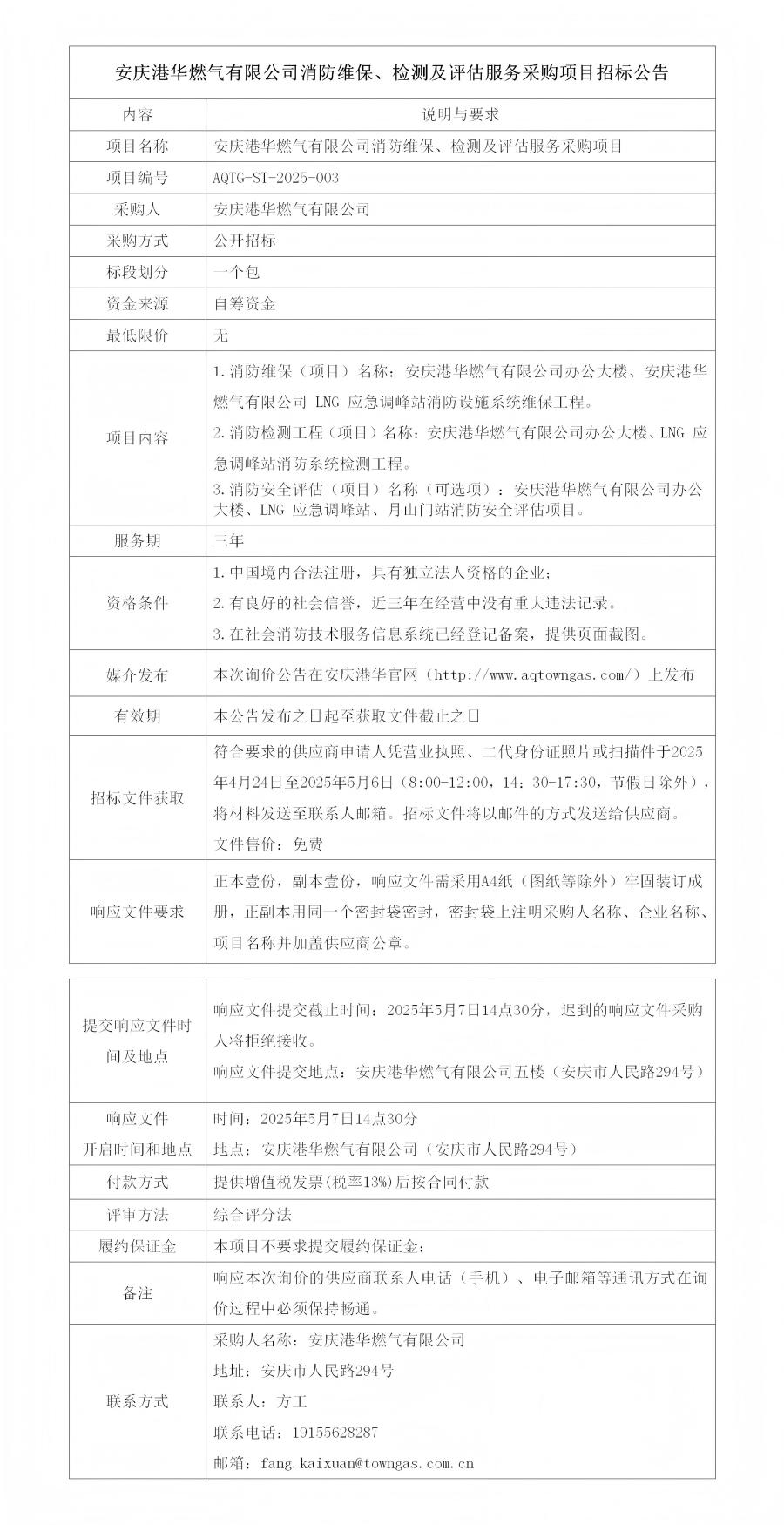 安慶港華燃?xì)庥邢薰鞠谰S保、檢測(cè)及評(píng)估服務(wù)采購(gòu)項(xiàng)目招標(biāo)公告