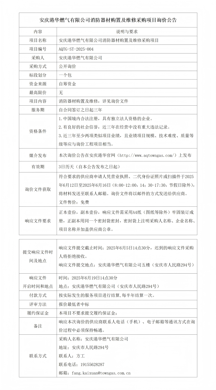 安慶港華燃?xì)庥邢薰鞠榔鞑馁徶眉熬S修采購項(xiàng)目詢價公告