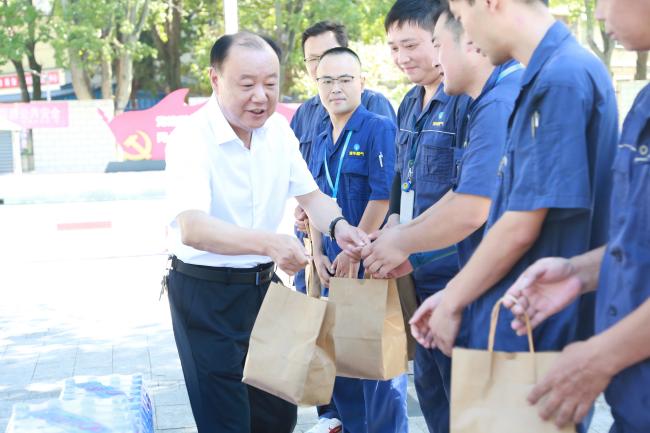 在活動(dòng)現(xiàn)場(chǎng),王耀武與一線安檢人員親切交談,詳細(xì)詢問(wèn)了他們的工作強(qiáng)度、防暑措施以及居民對(duì)燃?xì)獍踩?wù)的反饋情況,并對(duì)工作人員頂烈日、冒酷暑堅(jiān)守崗位,細(xì)致開(kāi)展燃?xì)獍矙z、安全知識(shí)宣傳等工作給予了高度肯定。他強(qiáng)調(diào),燃?xì)獍踩P(guān)乎千家萬(wàn)戶的生命財(cái)產(chǎn)安全,大家的每一份細(xì)致與堅(jiān)守,都是在為安慶市民筑牢安全防線。同時(shí)囑咐大家在高溫環(huán)境下要注意科學(xué)作息,注意自身防護(hù)。隨后還將精心準(zhǔn)備的防暑降溫用品一一送至他們手中。