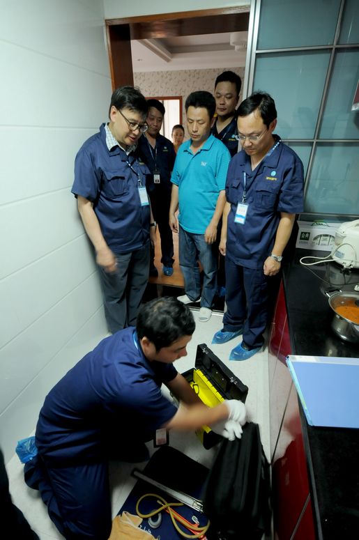 在安慶巡查的第三站——綠地迎江世紀城小區(qū),主要展示的是小區(qū)戶內(nèi)集中安檢。進入小區(qū),映入眼簾的是一排排安檢宣傳、咨詢、安全燃氣具展示區(qū),宣傳展板向居民展示燃氣安全使用知識、燃氣事故警示及安全燃氣具的使用等常識,工作人員細致耐心的解答居民的咨詢,并發(fā)放《燃氣客戶安全用氣手冊》。陳總裁等集團領(lǐng)導跟隨安檢員來到客戶家中,觀看戶內(nèi)安檢的每個環(huán)節(jié),當安檢人員規(guī)范地完成整個安檢流程后,陳總裁給予了“很好,不亞于香港水平”的高度評價。