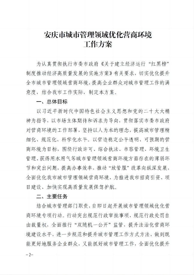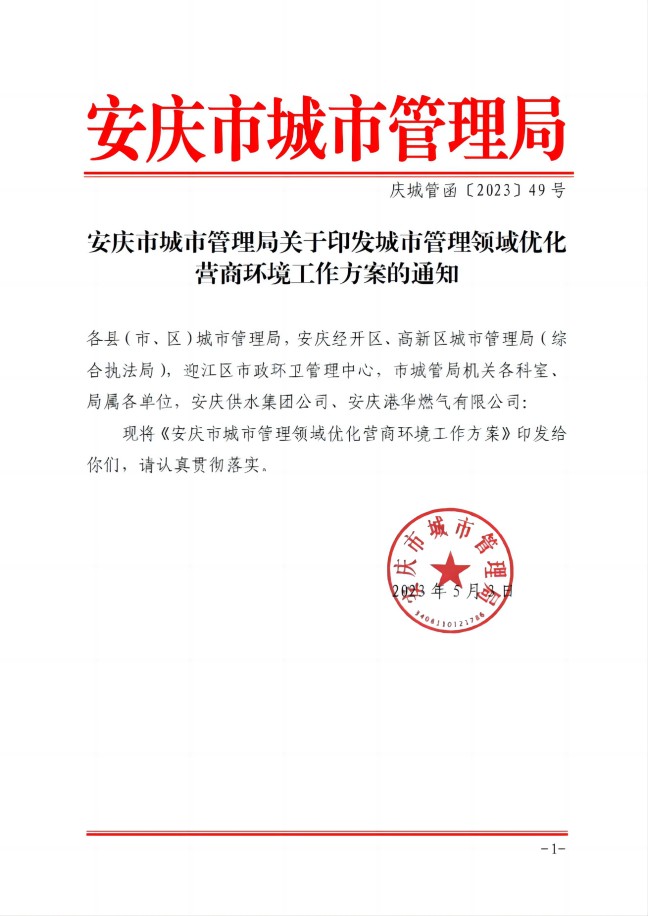 安慶市城市管理局關(guān)于印發(fā)城市管理領(lǐng)域優(yōu)化營(yíng)商環(huán)境工作方案的通知