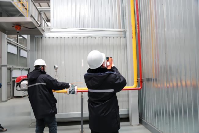 在生產(chǎn)車間內(nèi),服務(wù)組通過紅外測漏儀等探漏設(shè)備對管道運(yùn)行情況進(jìn)行細(xì)致檢查,逐一查看壓力表和燃?xì)鈭?bào)警器上的相關(guān)信息,確保每一處生產(chǎn)設(shè)備的燃?xì)馐褂冒踩?。在檢查的同時(shí),服務(wù)組還就廠區(qū)內(nèi)燃?xì)庠O(shè)備設(shè)施的實(shí)際情況,與廠房相關(guān)部門負(fù)責(zé)人進(jìn)行了現(xiàn)場宣講,并表示,無論遇到任何用能問題,都?xì)g迎隨時(shí)來電反映,安慶港華將第一時(shí)間上門提供服務(wù)。